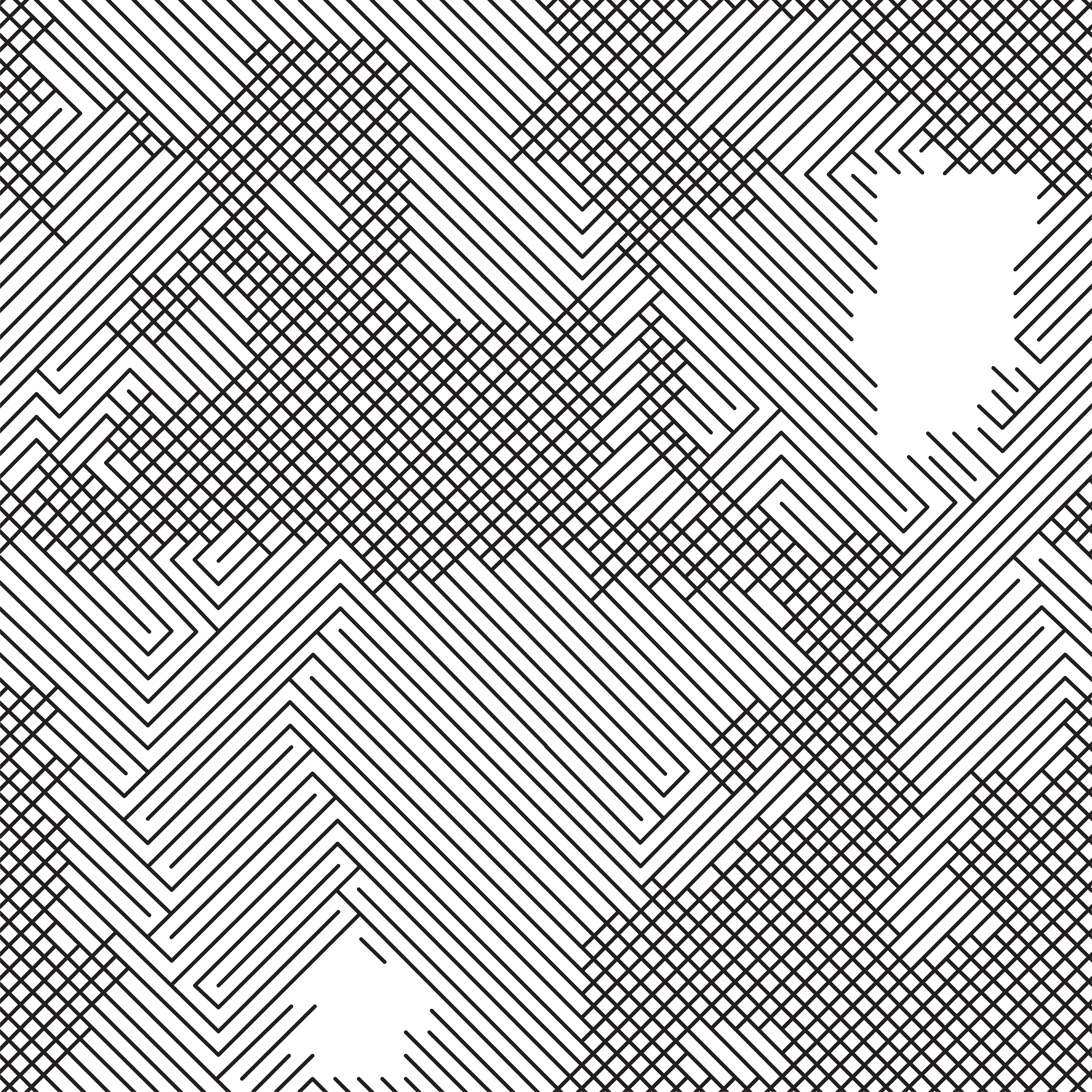 The terminating hole of the rib knit was developed independently and placed by shifting the mask by the size of the knit structures and again using the tile sampler.